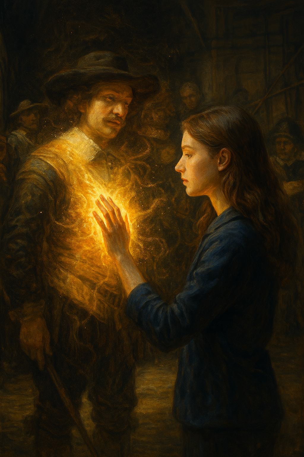 Aangetrokken door levende kunst, achtervolgd door vijanden die het ritueel willen verhinderen, reist Floor langs Rembrandt, Klimt, Munch, Picasso en Van Gogh—en ontdekt dat elke aanraking haar dieper transformeert.