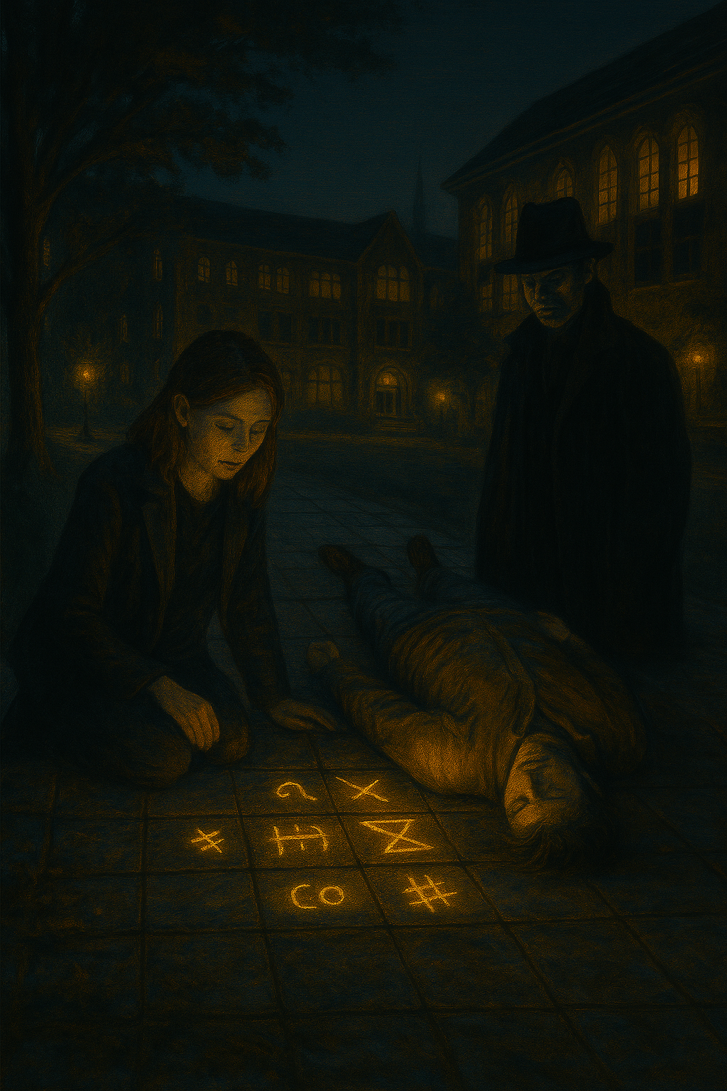 Een student dood wordt aangetroffen op een universiteitscampus. Er lijkt niets te kloppen—geen sporen van strijd, wel een raadselachtige code op de tegels. Profiler Alexandra Devos wordt ingeschakeld en ontdekt al snel dat de tekens geen signatuur zijn, maar een taal. Wanneer nieuwe slachtoffers volgen, ontvouwt zich een intellectueel spel dat steeds persoonlijker wordt.